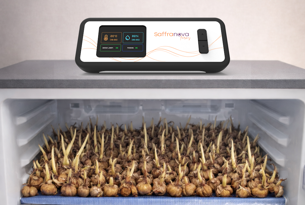 The kit maintains precise temperature, humidity, and airflow conditions required for saffron sprouting and flowering. This ensures consistent results regardless of external climate conditions.